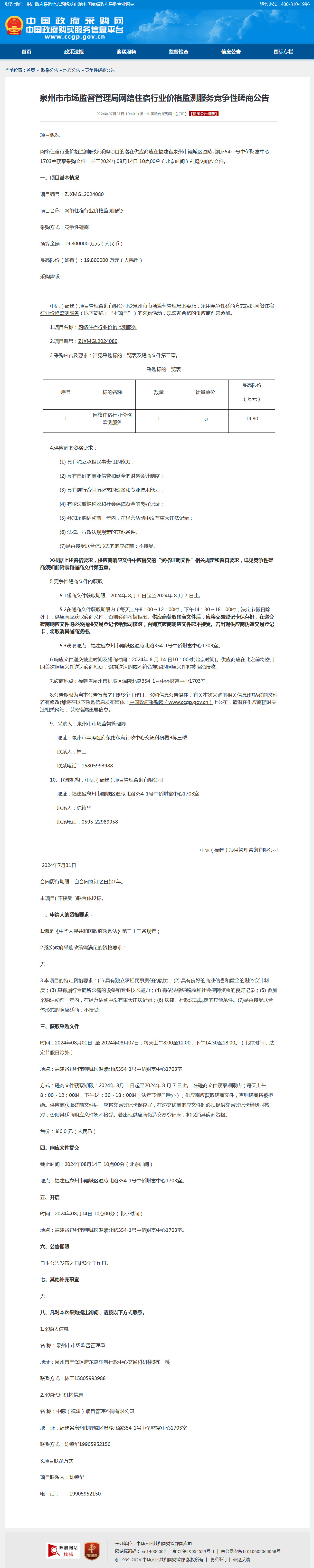 网络住宿行业价格监测服务竞争性磋商公告