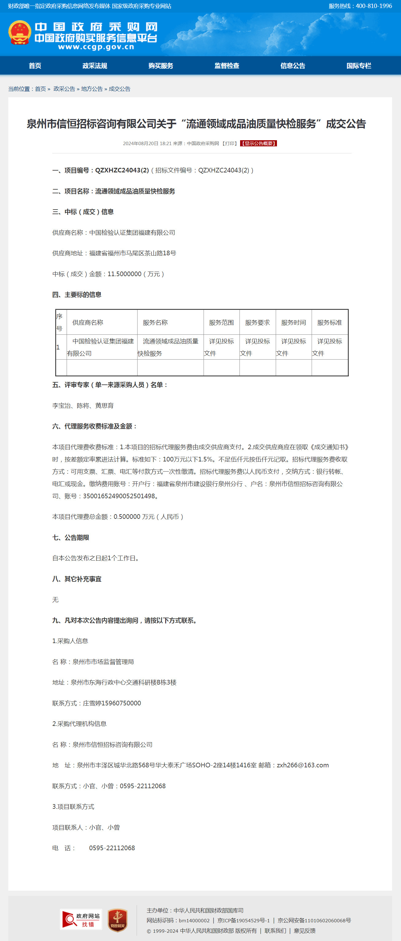 “流通领域成品油质量快检服务”成交公告