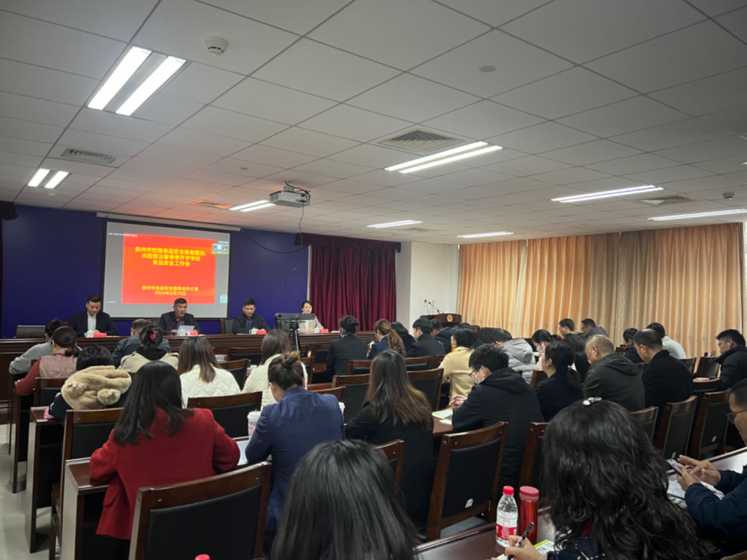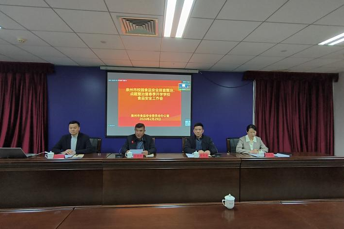 2月29日,泉州市食安办召开全市校园食品安全排查整治、点题整治暨春季开学学校食品安全工作会,深入贯彻落实国务院食安办、福建省食安办校园食品安全排查整治专项行动调度会议精神,全力推进全市校园食品安全排查整治专项行动、持续深化点题整治,做好春季开学学校食品安全风险隐患排查工作。泉州市食安办副主任、市市场监管局党组成员、食品总监肖朝晖主持会议并讲话。