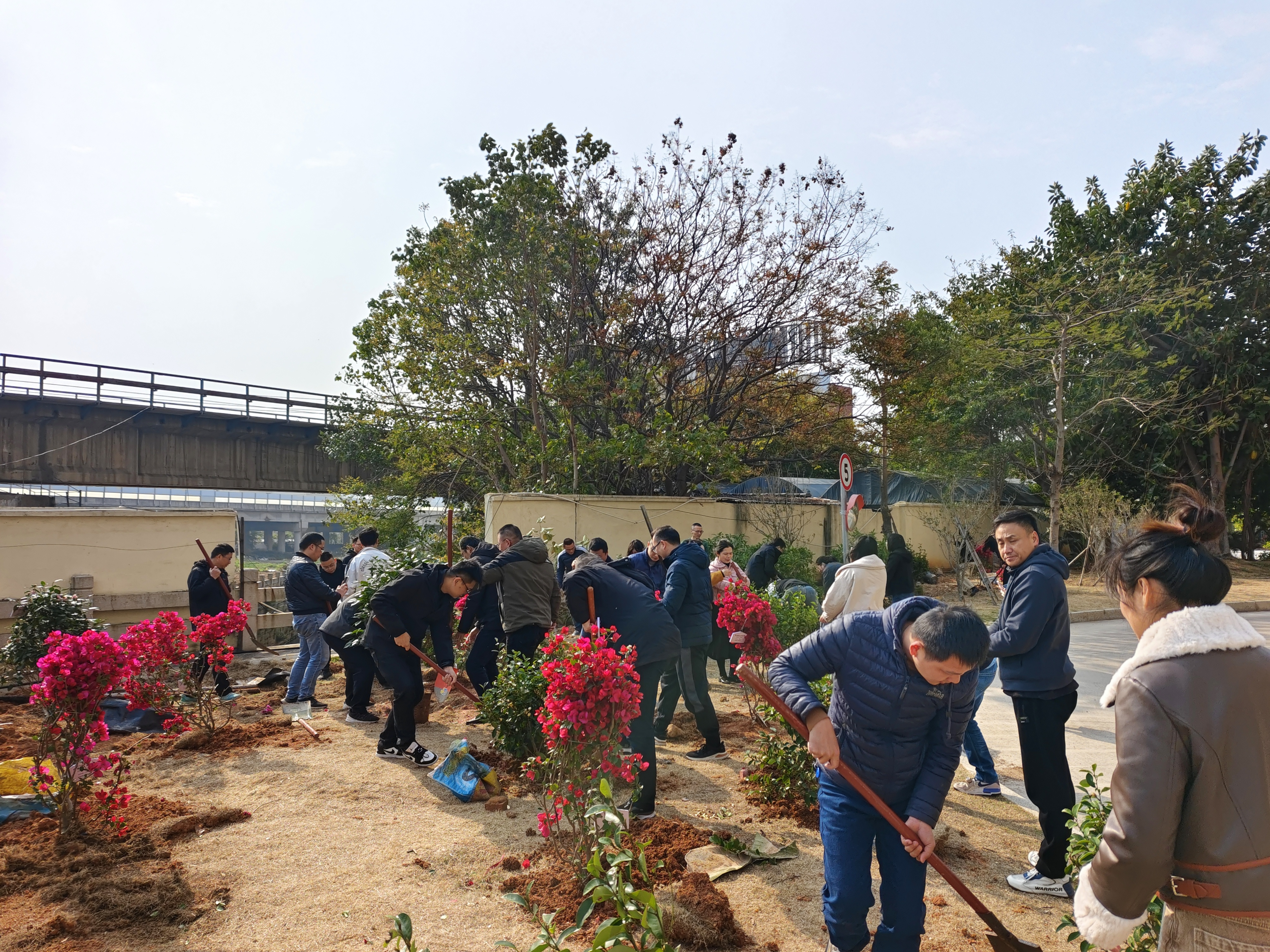 当天的植树活动现场,全体党员干部共同种下一株株树苗,大家热情高涨,干劲十足,以科室为单位,三五成群,挥锨培土,栽植浇水,最后挂上专属的科室认养牌,后续定期养护……当天共种植茶花、含笑、三角梅、炮仗花等多批树苗,为早春的泉州特检家园增添勃勃生机。